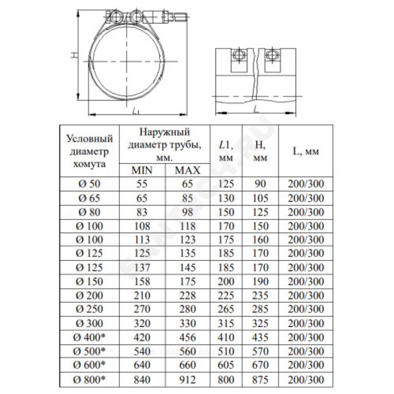 - Артикул:Хомут ремонтный односторонний сталь нерж Ду 125 L=132-330мм