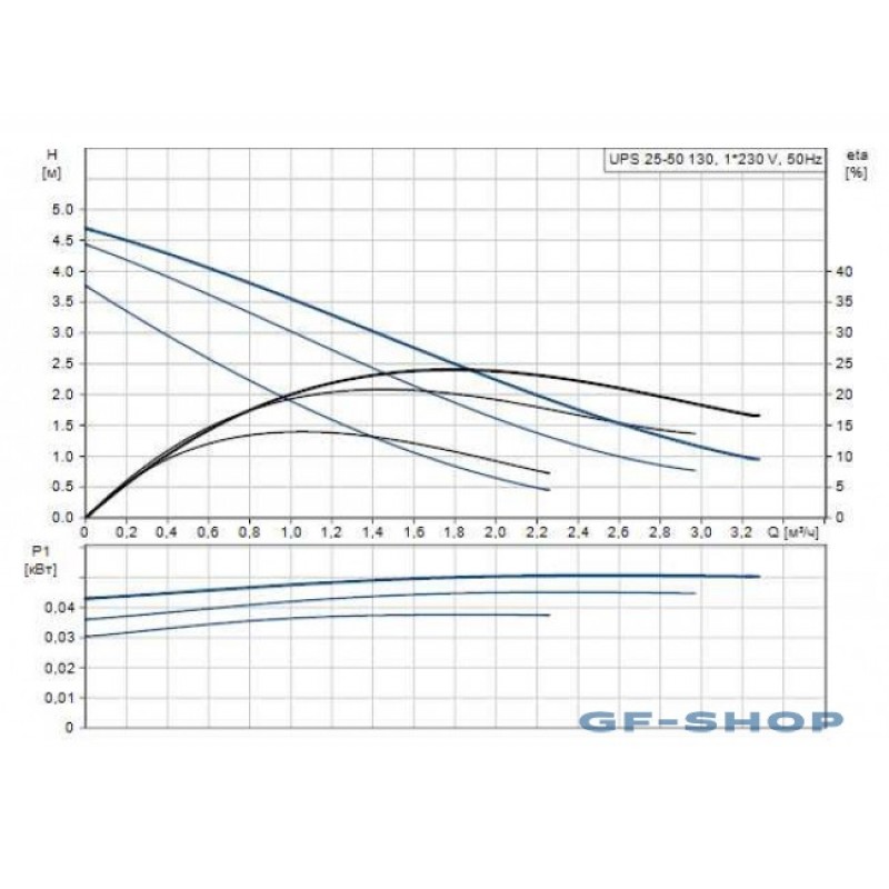 Циркуляционные насосы Grundfos UPS 25-50 130 используются для циркуляции воды или гликольсодержащих жидкостей в системах отопления и кондиционирования. Данный насос имеет исполнение с уменьшенной монтажной длиной 130 мм.Насосы UPS представляют собой целую серию трехскоростных циркуляционных насосов с тремя скоростями, доступных в исполнении с 50 Гц и с 60 Гц. Данные насосы могут использоваться как в незамкнутых, так и в замкнутых системах. Насосы UPS являются насосами с герметизированным ротором, т.е. насос и двигатель составляют единый блок без торцевого уплотнения всего с двумя сальниками в качестве уплотнения. В качестве смазки для подшипников используется перекачиваемая жидкость. Назначение Насосы UPS спроектированы для обеспечения циркуляции жидкостей в системах отопления и кондиционирования воздуха. Насосы с корпусами из бронзы и нержавеющей стали также подходят для использования в системах горячего водоснабжения. Примеры обычных видов назначения приведены ниже: Однотрубные и двухтрубные системы отопления; Основные насосы; Зональные насосы; Котельные насосы с параллельным всасыванием; Насосы для отопительных поверхностей; Водонагреватели; Системы отопления "тёплый пол"; Системы солнечного отопления; Теплонасосные системы; Геотермальные системы теплоснабжения; Системы регенерации тепла; Двухтрубные системы кондиционирования воздуха; Насосы для холодильных установок.