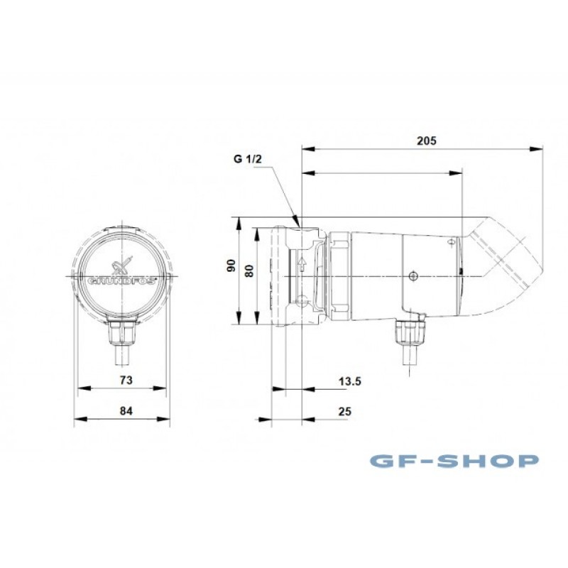 Насос циркуляционный Grundfos UP 15-14 BU 80 - насос со сферическим электродвигателем. В отличие от традиционных насосов с "мокрым ротором", сферический электродвигатель не имеет подшипников вала. Магнитное поле передается от статора к ротору в проводящей водной среде и через проводящие части насоса.