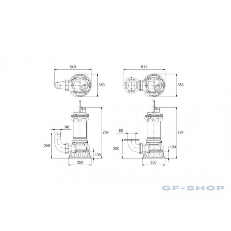 Насос выполнен из чугуна, имеет боковое напорное отверстие и оснащен встроенным погружным трехфазным закрытым электродвигателем, имеющим класс изоляции F (155°C).