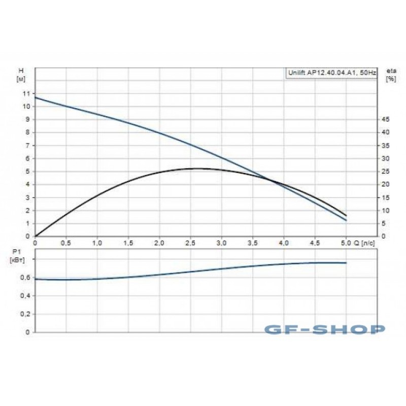 Unilift AP является одноступенчатым насосом либо с полуоткрытым рабочим колесом (AP12), либо с вихревым рабочим колесом (AP35 и AP50). Все насосы Unilift AP оснащаются муфтой из нержавеющей стали для охлаждения в процессе эксплуатации. Сетчатый фильтр в нижней части препятствует попаданию в насос частиц, превышающих предельно допустимый размер для данного насоса. Сетчатый фильтр крепится к корпусу насоса хомутом. Все насосы Unilift AP могут поставляться с поплавковым выключателем или без него с целью обеспечения автоматического или ручного режима работы. Насосы, в условном обозначении которых присутствует буква "А" оснащаются поплавковым выключателем.