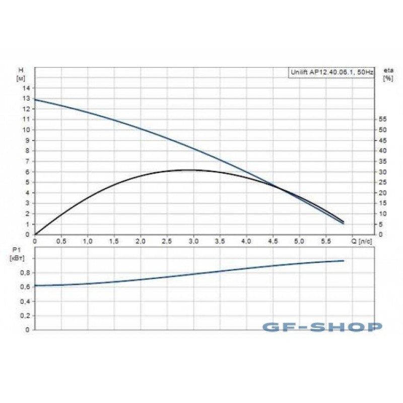 Одноступенчатый погружной дренажный насос Grundfos UNILIFT AP 12.40.06.1 с вертикальным напорным патрубком и фильтром в основании. Все детали, находящиеся в контакте с рабочей средой, выполнены из нержавеющей стали. Служит для перекачивания чистой и загрязненной воды без волокнистых включений с твердыми частицами до 12 мм, отведения воды из затапливаемых помещений, стиральных машин, моечных агрегатов и душа. А так же откачивания воды из рек, прудов и различных емкостей, откачки ливневых стоков. Unilift AP и Unilift AP Basic являются погружными дренажными насосами. Переносные, отдельно стоящие насосы Unilift AP спроектированы как для временного монтажа (портативными), так и для постоянной стационарной установки. Данные одноступенчатые насосы в основном выполнены из нержавеющей стали. Все модели доступны либо в однофазном исполнении, либо в трёхфазном исполнении, и с питанием 50 или 60 Гц. Номер в условном обозначении модели, например, AP12 указывает на размер круглых частиц, которые насос может пропустить. Все насосы Unilift AP и AP Basic оснащаются штепселем для соединения с сетью питания. Unilift AP является одноступенчатым насосом либо с полуоткрытым рабочим колесом (AP12), либо с вихревым рабочим колесом (AP35 и AP50). Все насосы Unilift AP оснащаются муфтой из нержавеющей стали для охлаждения в процессе эксплуатации. Сетчатый фильтр в нижней части препятствует попаданию в насос частиц, превышающих предельно допустимый размер для данного насоса. Сетчатый фильтр крепится к корпусу насоса хомутом. Все насосы Unilift AP могут поставляться с поплавковым выключателем или без него с целью обеспечения автоматического или ручного режима работы. Насосы, в условном обозначении которых присутствует буква "А" оснащаются поплавковым выключателем. Трёхфазная версия имеет дополнительный пускатель, соединённый с поплавковым выключателем. Выходное отверстие расположено в верхней части насоса и может иметь резьбу от Rp 1 1/2 до Rp 2. Дополнительный обратный клапан с поворотным диском может быть установлен на выходном отверстии для предотвращения обратного потока. Насосы Unilift AP Basic являются одноступенчатыми насосами (AP35B, AP50B) с вихревым рабочим колесом. Все насосы Unilift AP Basic выполнены из нержавеющей стали с композитной плитой-основанием. Серия Unilift AP Basic спроектирована для работы в погружённом состоянии, насос устанавливается отдельно на плите-основании или с использованием автоматической трубной муфты. Всасывающий патрубок спроектирован для предотвращения попадания крупных частиц в насос. Плита-основание присоединяется с помощью четырёх хомутов, скрытых под композитным кольцом в верхней части корпуса насоса. Кольцо предотвращает налипание грязи на хомуты. Все насосы Unilift AP Basic могут поставляться с поплавковым выключателем или без него с целью обеспечения автоматического или ручного режима работы. Насосы с буквой "А" в условном обозначении модели оснащаются поплавковым выключателем. Выходное отверстие расположено в боковой части насоса и имеет резьбу R 2. Назначение Перекачивание воды и дождевой воды на садовых участках Перекачивание воды из рек и озёр Перекачивание дождевой, дренажной и паводковой воды Перекачивание воды для заполнения/опорожнения контейнеров, водоотстойников, баков и т. п. Перекачивание стоков от душевых, стиральных машин и раковин, расположенных ниже уровня канализац