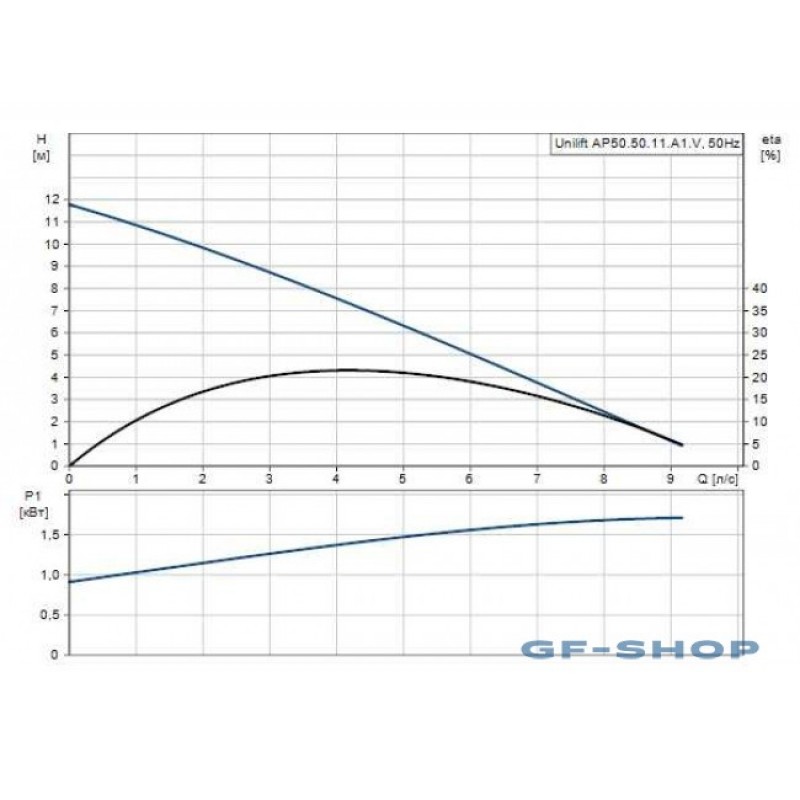 Одноступенчатый погружной дренажный насос Grundfos UNILIFT AP 50.50.11.A1.V с вертикальным напорным патрубком и фильтром в основании. Все детали, находящиеся в контакте с рабочей средой, выполнены из нержавеющей стали. Служит для перекачивания чистой и загрязненной воды без волокнистых включений с твердыми частицами до 50 мм, отведения воды из затапливаемых помещений, стиральных машин, моечных агрегатов и душа. А так же откачивания воды из рек, прудов и различных емкостей, откачки ливневых стоков.