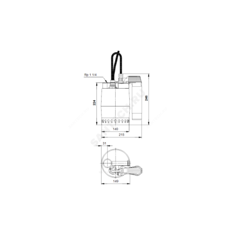 | Область применения | Одноступенчатый погружной дренажный насос вертикальным нагревательным напорным патрубком и сеткой в основании. Служит для перекачивания чистой и загрязненной воды без волокнистых включений с твердыми частицами до 10 мм, отведения воды из затапливаемых помещений, стиральных машин, моечных агрегатов и душа. А так же откачивания воды из рек, прудов и различных емкостей. |