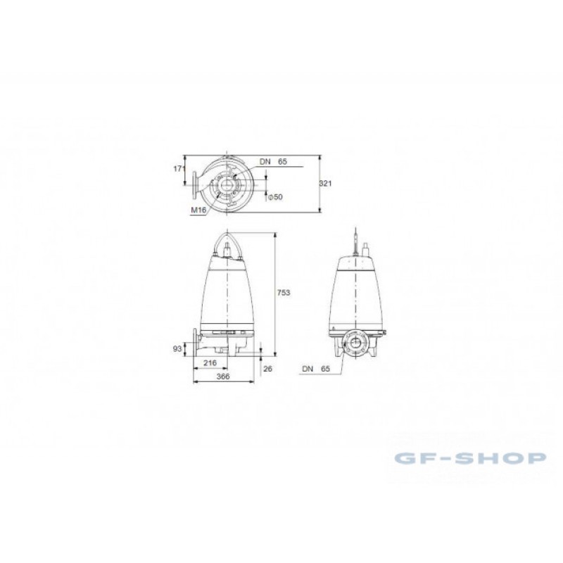 Несамовсасывающий одноступенчатый центробежный насос, предназначенный для перекачивания сточных вод, технологических вод и неочищенных сточных вод, не пропущенных через решетку. Насос предназначен для периодической и непрерывной эксплуатации. Безжидкостная система охлаждения, не требующая технического обслуживания, обеспечивает возможность использования насоса при установке в погруженном положении или «сухой» установке. Эффективное рабочее колесо SuperVortex обеспечивает проход длинных волокон и твердых частиц до 65 мм и подходит для сточных вод с содержанием сухих веществ до 5%. Уникальная система монтажа с помощью хомута из нержавеющей стали позволяет быстро и легко выполнять демонтаж насоса с узла электродвигателя для технического обслуживания и осмотра. Не требуются никакие специальные инструменты. Соединение трубопровода обеспечивается с использованием фланца DIN