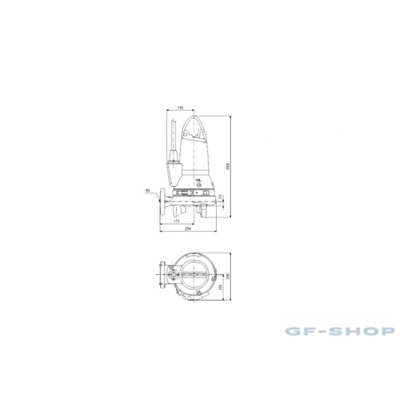 Несамовсасывающий одноступенчатый центробежный насос с горизонтальным патрубком нагнетания, специально предназначенный для подъема и перекачивания сточных вод, содержащих стоки из туалетов. Насос оснащен режущим механизмом, который измельчает поддающиеся разрушению твердые частицы на мелкие части таким образом, чтобы их можно было отводить по трубам относительно небольшого диаметра. Поверхность насоса является гладкой для предотвращения прилипания грязи и примесей к насосу. Хомут из нержавеющей стали, стойкой к коррозии, скрепляет электродвигатель и корпус насоса и позволяет легко выполнять техническое обслуживание насоса. Для обеспечения максимального КПД насоса в течение срока его службы система SmartTrim позволяет легкую настройку зазора за рабочим колесом.