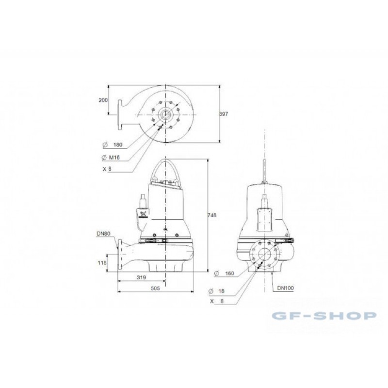 Несамовсасывающий одноступенчатый центробежный насос, предназначенный для перекачивания сточных вод, технологических вод и неочищенных сточных вод, не пропущенных через решетку. Насос предназначен для периодической и непрерывной эксплуатации в погруженном положении. Рабочее колесо S-tube® обеспечивает свободный сферический проход твердых частиц до 50 мм и подходит для сточных вод с содержанием сухих веществ до 3%. Уникальная система монтажа с помощью хомута из нержавеющей стали позволяет быстро и легко выполнять демонтаж насоса с узла электродвигателя для технического обслуживания и осмотра. Не требуются никакие специальные инструменты. Соединение трубопровода обеспечивается с использованием фланца DIN .