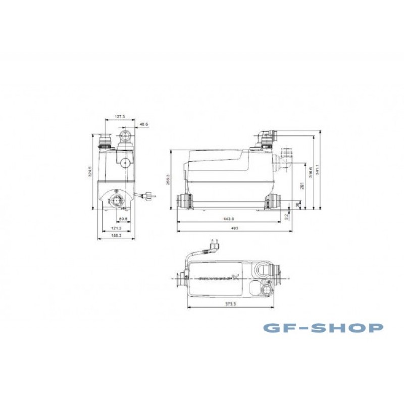 Канализационная насосная установка Grundfos SOLOLIFT2 C-3 это малогабаритная, полностью укомплектованная и готовая к монтажу насосная установка, представляет собой герметично закрытый пластиковый резервуар в котором расположены - насос с двигателем “сухого исполнения” с обратным клапаном в напорном патрубке, реле уровня, вентиляционный клапан с угольным фильтром улучшенного качества (не требуются никакие дополнительные фильтры), электрический кабель длиной 1.2 м со штекером Shuko. Насос автоматически включается при заполнении резервуара (уровень включения) и автоматически выключается при его опорожнении (уровня выключения). Sololift2 C-3 обычно используется для:душевых кабинок, умывальников, ванн, стиральных машин (максимум 90°C) и посудомоечных машинок в полуподвальных помещениях ниже уровня канализации, или в связи с ремонтом или модернизацией существующих зданий, когда их месторасположение может быть на удалении от главного канализационного стояка и недостаточно установить естественный уклон. Sololift2 C-3 подходит для установки под умывальником, или особенно подходит для монтажа в ограниченном пространстве в конструкциях возле стен и встроенных шкафов. Низкие уровни включения/выключения подходят даже при использовании с душевым поддоном.
