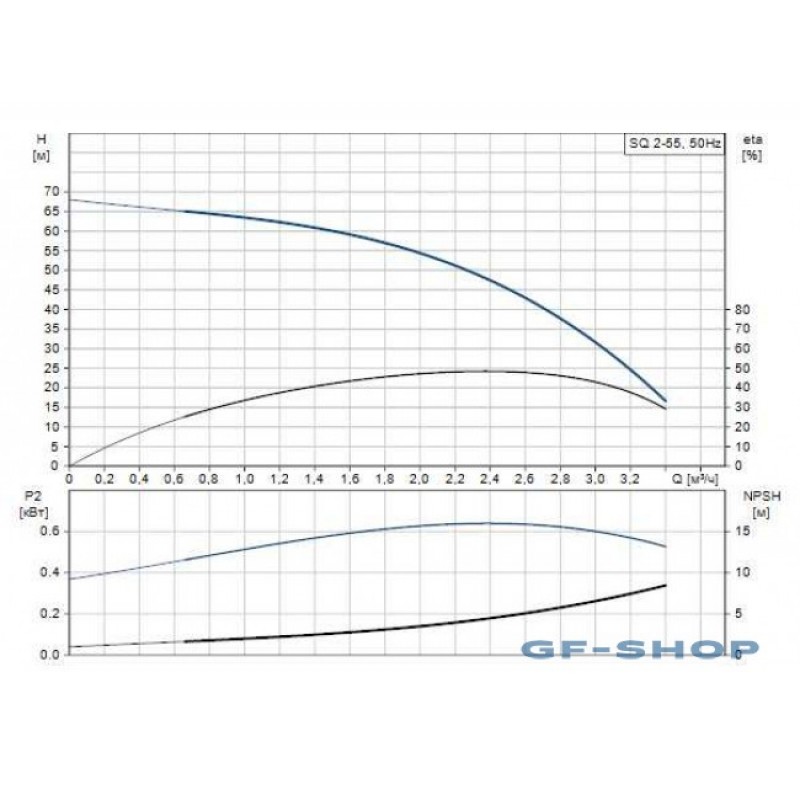 Скважинные насосы Grundfos SQ 2-55 с кабелем предназначены для перекачивания чистых, не содержащих твердых частиц или волокон, жидкостей. Применяются для подачи грунтовой воды в системы водоснабжения частных домов, небольших водопроводных станций, ирригационных систем.