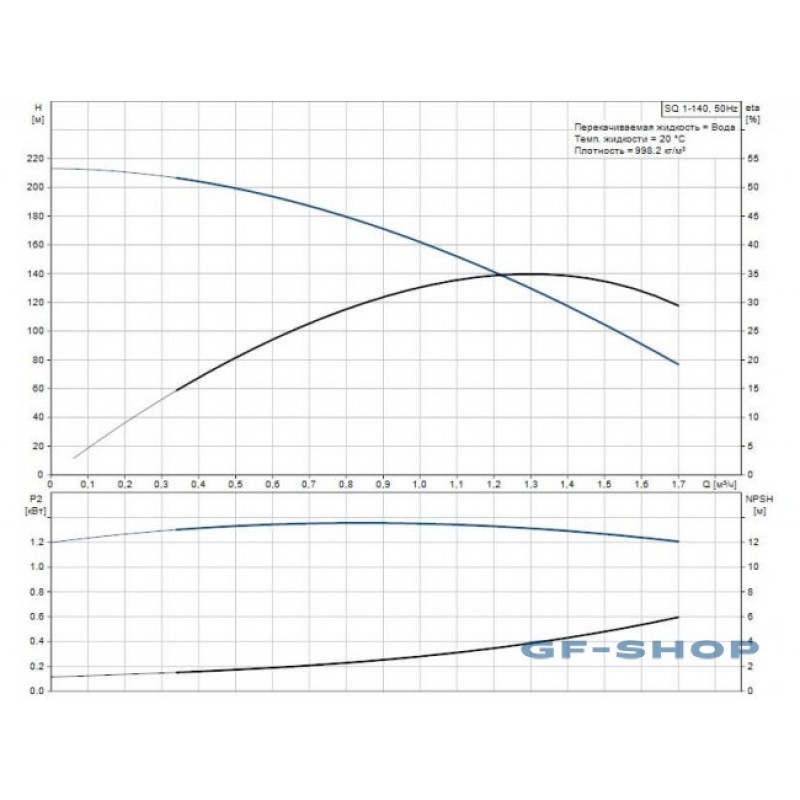 Скважинный насос Grundfos SQ 1- 140 рассчитан для работы с чистой водой, не содержащей посторонних волокон, твердых частичек. Оборудование комплектуется системами предохранителей от функционирования всухую, за счет которых обеспечивается автоматическое отключение, если в водозаборном источнике нет воды. Насосы серии отличаются производительностью, долговечностью, что достигается включением стекловолокна в гидравлические элементы. Оборудование экономично в расходе тока, минимизирует затраты пользователя, может устанавливаться в различном положении. Насосы допускается применять для водоснабжения домов, наполнения резервуаров, в ирригационных системах. Модели поддерживают хороший напор даже при проблемах с напряжением сети. Функция плавного пуска устраняет повреждения от воздействия гидроударов, а обратный клапан препятствует образованию обратного потока. Оптимальная конструкция из нержавеющей стали и антикоррозийных материалов в сочетании с низкими производственными затратами обеспечивают высокий КПД насоса и электродвигателя. Насосы SQ/SQE подходят как для непрерывной работы, так и для работы с перерывами, что соответствует большому количеству видов назначения: Подача грунтовых вод – частные дома, небольшие системы водоснабжения, небольшие системы орошения; Перекачивание жидкости в резервуары; Повышение давления; Экологические решения – восстановительное откачивание или взятие проб; Гаражи и заправочные станции.