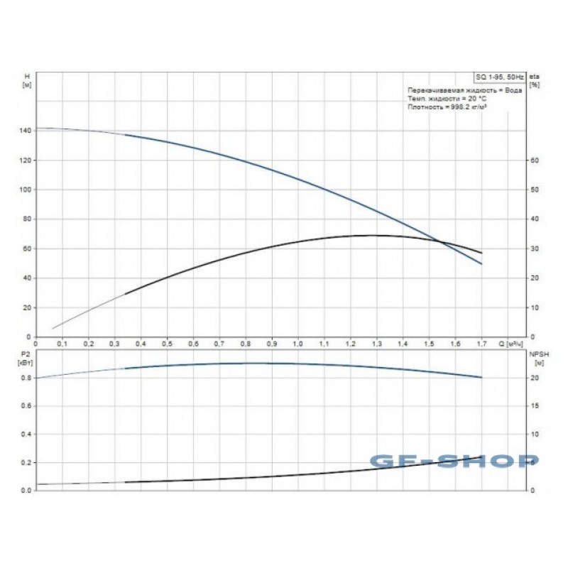 Скважинный насос Grundfos SQ 1- 95 рассчитан для работы с чистой водой, не содержащей посторонних волокон, твердых частичек. Оборудование комплектуется системами предохранителей от функционирования всухую, за счет которых обеспечивается автоматическое отключение, если в водозаборном источнике нет воды. Насосы серии отличаются производительностью, долговечностью, что достигается включением стекловолокна в гидравлические элементы. Оборудование экономично в расходе тока, минимизирует затраты пользователя, может устанавливаться в различном положении. Насосы допускается применять для водоснабжения домов, наполнения резервуаров, в ирригационных системах. Модели поддерживают хороший напор даже при проблемах с напряжением сети. Функция плавного пуска устраняет повреждения от воздействия гидроударов, а обратный клапан препятствует образованию обратного потока. Оптимальная конструкция из нержавеющей стали и антикоррозийных материалов в сочетании с низкими производственными затратами обеспечивают высокий КПД насоса и электродвигателя. Насосы SQ/SQE подходят как для непрерывной работы, так и для работы с перерывами, что соответствует большому количеству видов назначения: Подача грунтовых вод – частные дома, небольшие системы водоснабжения, небольшие системы орошения; Перекачивание жидкости в резервуары; Повышение давления; Экологические решения – восстановительное откачивание или взятие проб; Гаражи и заправочные станции.