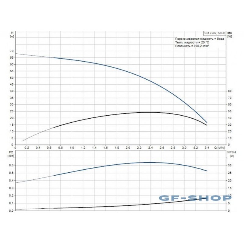 Скважинные насосы Grundfos SQ 2-55 предназначены для перекачивания чистых, не содержащих твердых частиц или волокон, жидкостей. Применяются для подачи грунтовой воды в системы водоснабжения частных домов, небольших водопроводных станций, ирригационных систем.
