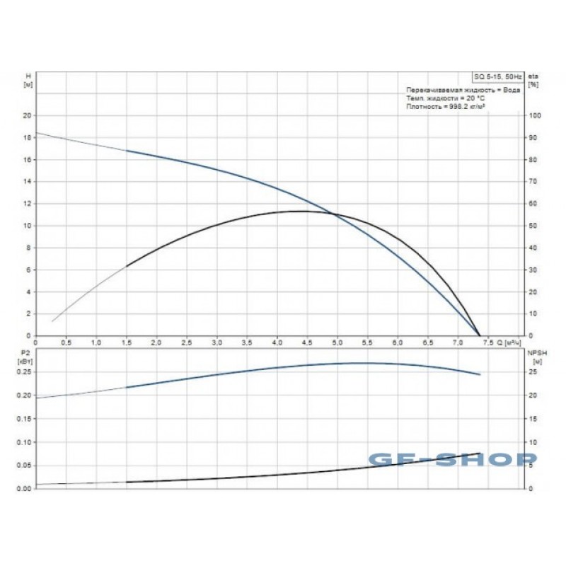 Скважинные насосы Grundfos SQ 5-25 предназначены для перекачивания чистых, не содержащих твердых частиц или волокон, жидкостей. Применяются для подачи грунтовой воды в системы водоснабжения частных домов, небольших водопроводных станций, ирригационных систем. Насос скважинный Grundfos SQ рассчитан для работы с чистой водой, не содержащей посторонних волокон, твердых частичек. Оборудование комплектуется системами предохранителей от функционирования всухую, за счет которых обеспечивается автоматическое отключение, если в водозаборном источнике нет воды. Насосы серии отличаются производительностью, долговечностью, что достигается включением стекловолокна в гидравлические элементы. Оборудование экономично в расходе тока, минимизирует затраты пользователя, может устанавливаться в различном положении. Насосы допускается применять для водоснабжения домов, наполнения резервуаров, в ирригационных системах. Модели поддерживают хороший напор даже при проблемах с напряжением сети. Функция плавного пуска устраняет повреждения от воздействия гидроударов, а обратный клапан препятствует образованию обратного потока. Оптимальная конструкция из нержавеющей стали и антикоррозийных материалов в сочетании с низкими производственными затратами обеспечивают высокий КПД насоса и электродвигателя. Насосы SQ/SQE подходят как для непрерывной работы, так и для работы с перерывами, что соответствует большому количеству видов назначения: Подача грунтовых вод – частные дома, небольшие системы водоснабжения, небольшие системы орошения; Перекачивание жидкости в резервуары; Повышение давления; Экологические решения – восстановительное откачивание или взятие проб; Гаражи и заправочные станции.