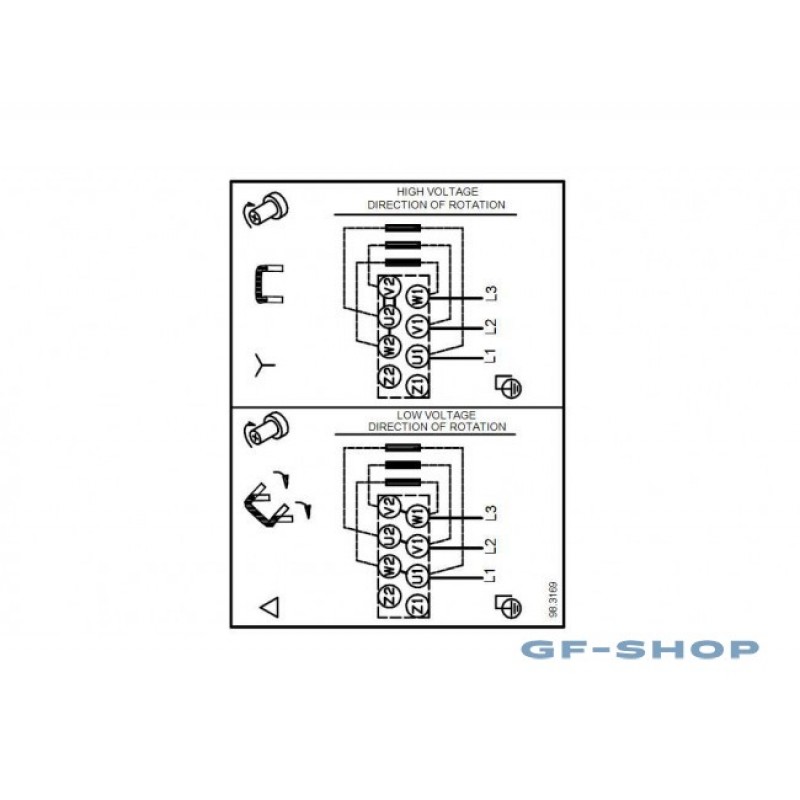Насос оснащен асинхронным 3-фазным электродвигателем на лапах, с воздушным охлаждением.