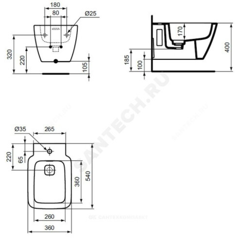| Комплект поставки | Подвесное биде, с отверстием перелива, с керамической накладкой слива (T854601), с крепежом |