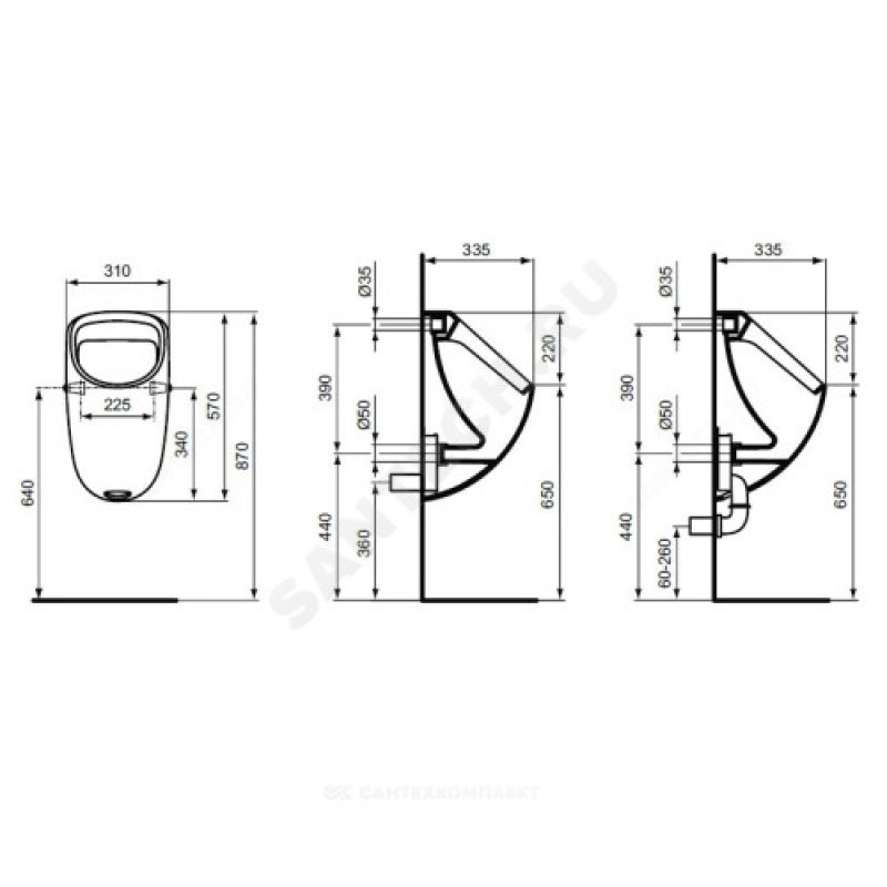 | Подвод воды к писсуару | скрытый |