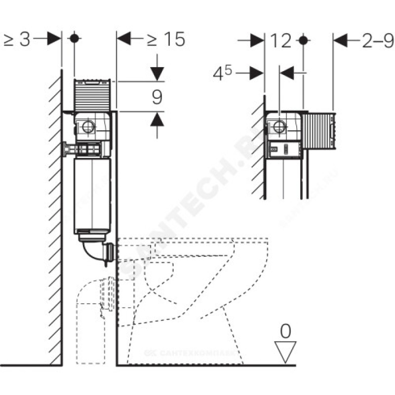 | Наименование производителя | Смывной бачок скрытого монтажа Geberit Omega 12 см, 6/3 литра, монтажная высота 82 см |