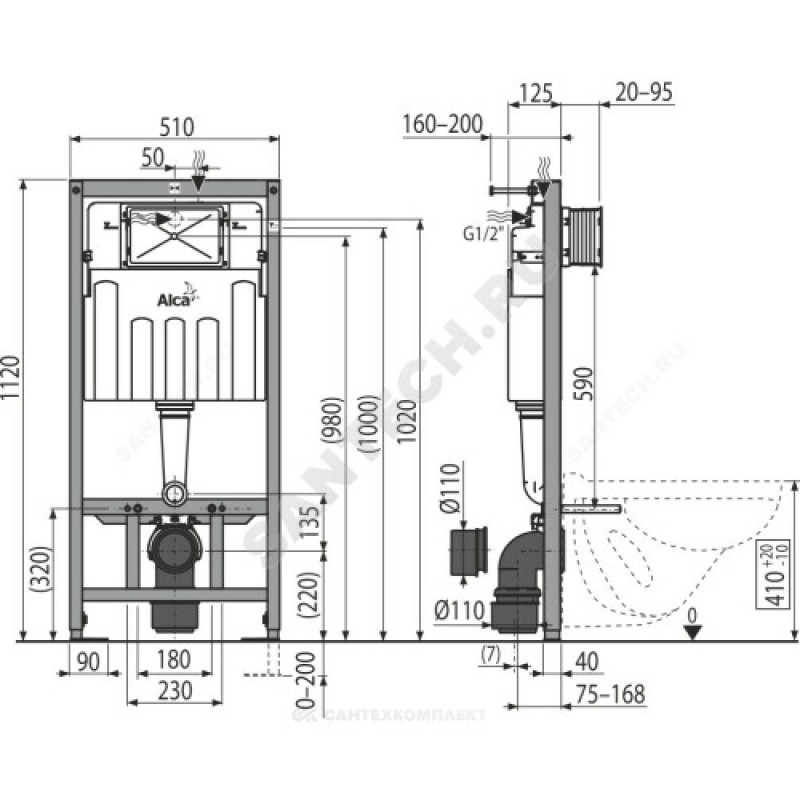 | Глубина установки инсталляции | 125 мм |