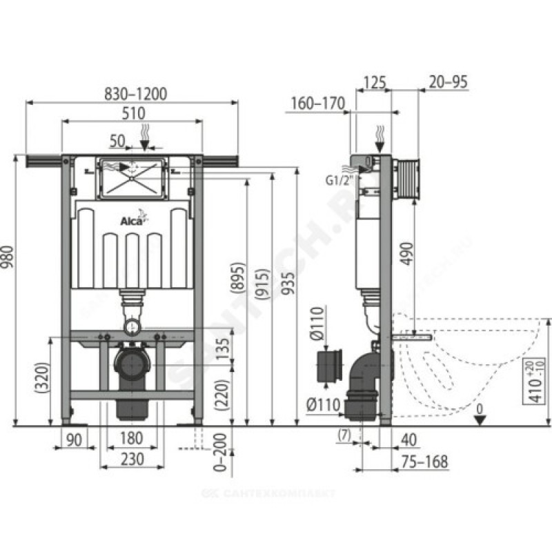 | Глубина установки инсталляции | 125 мм |
