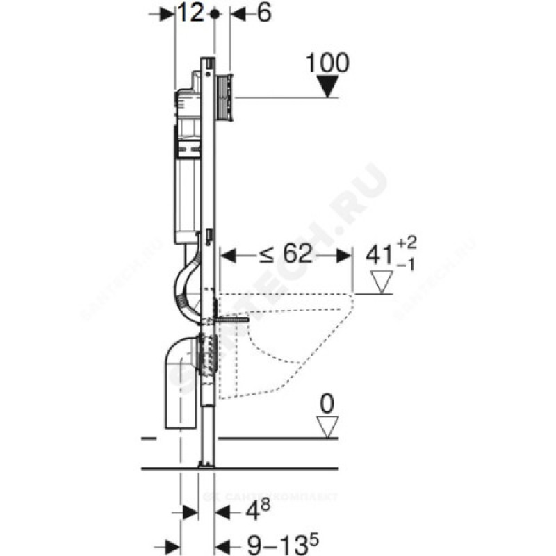 | Наименование производителя | Инсталляция Geberit Duofix для подвесного унитаза, 112 см, со смывным бачком скрытого монтажа Sigma 12 см, анкер для крепления к стене и звукоизолирующий комплект, 4/2 литра |