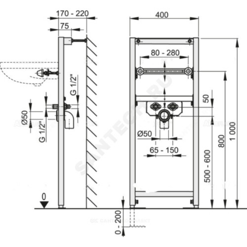 | Глубина установки инсталляции | 170-220 мм |