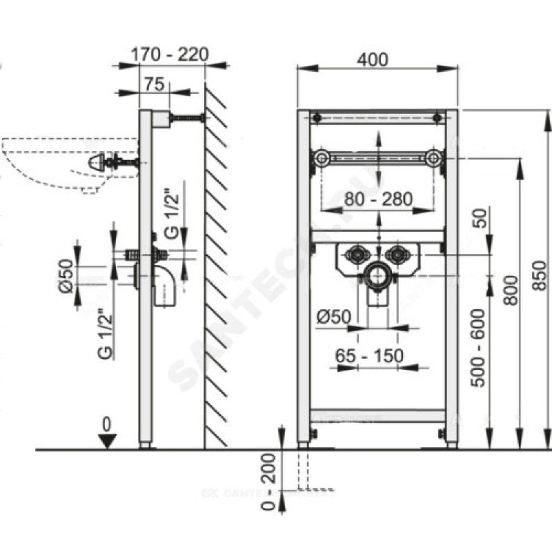 | Глубина установки инсталляции | 170-220 мм |