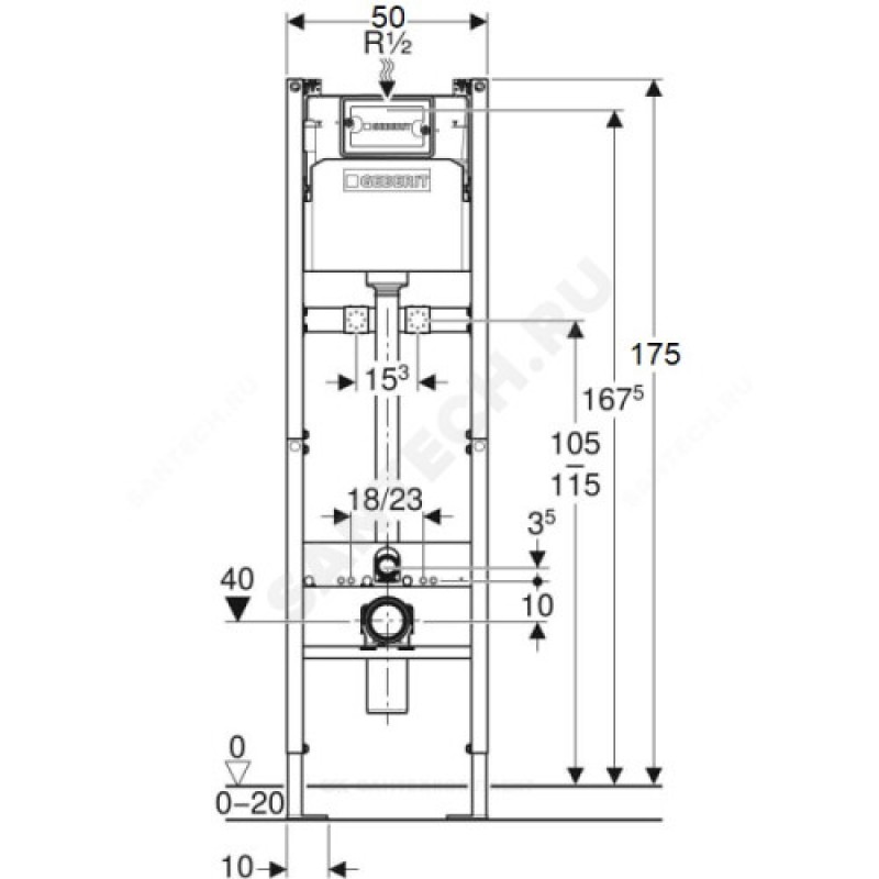 | Наименование производителя | Инсталляция Geberit Duofix для раковины для слива сильно загрязненной воды с подключением смывного бачка, 175 см, со смывным бачком скрытого монтажа Delta 12 см, настенный смеситель наружного монтажа |