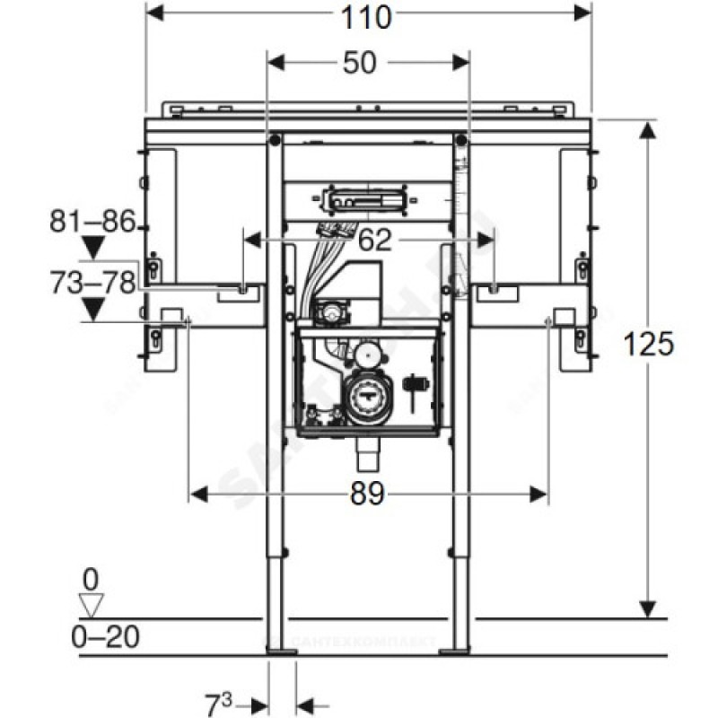 | Наименование производителя | Инсталляция Geberit Duofix для раковины Geberit ONE и встраиваемого в стену смесителя Geberit ONE, по высоте помещения, с внутристенным поворотным сифоном, с внутристенным Clou: B=110см, Ширина pаковина=105см, H=125см, T=14см |