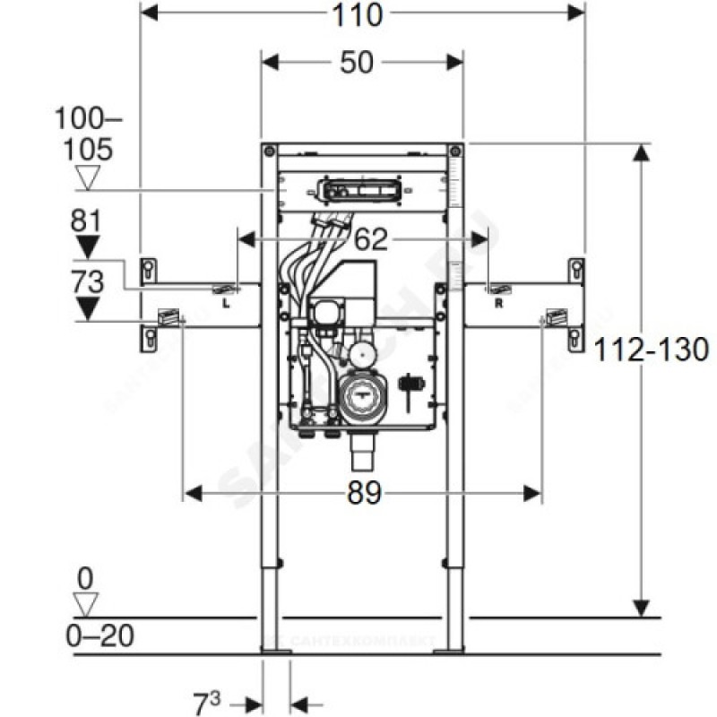 | Наименование производителя | Инсталляция Geberit Duofix для раковины Geberit ONE и встраиваемого в стену смесителя Geberit ONE, на высоту рамы, с внутристенным поворотным сифоном, с внутристенным Clou: B=110см, Ширина pаковина=105см, H=112–130см, T=12см |