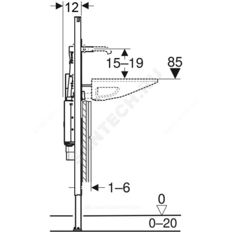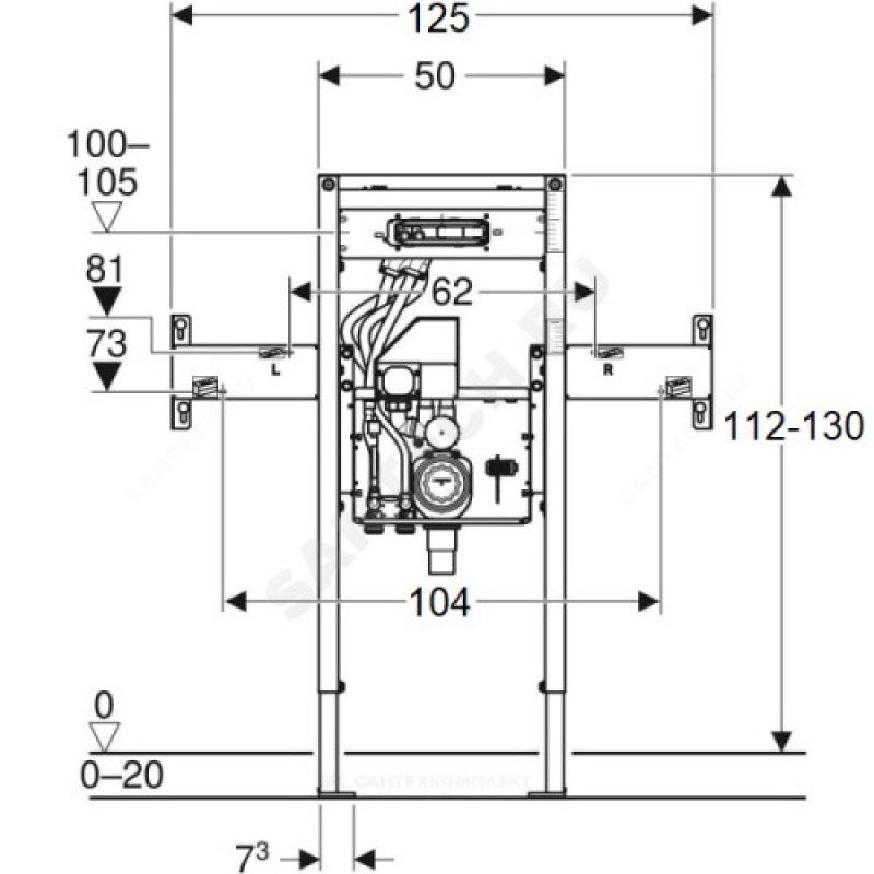 | Наименование производителя | Инсталляция Geberit Duofix для раковины Geberit ONE и встраиваемого в стену смесителя Geberit ONE, на высоту рамы, с внутристенным поворотным сифоном, с внутристенным Clou: B=125см, Ширина pаковина=120см, H=112–130см, T=12см |