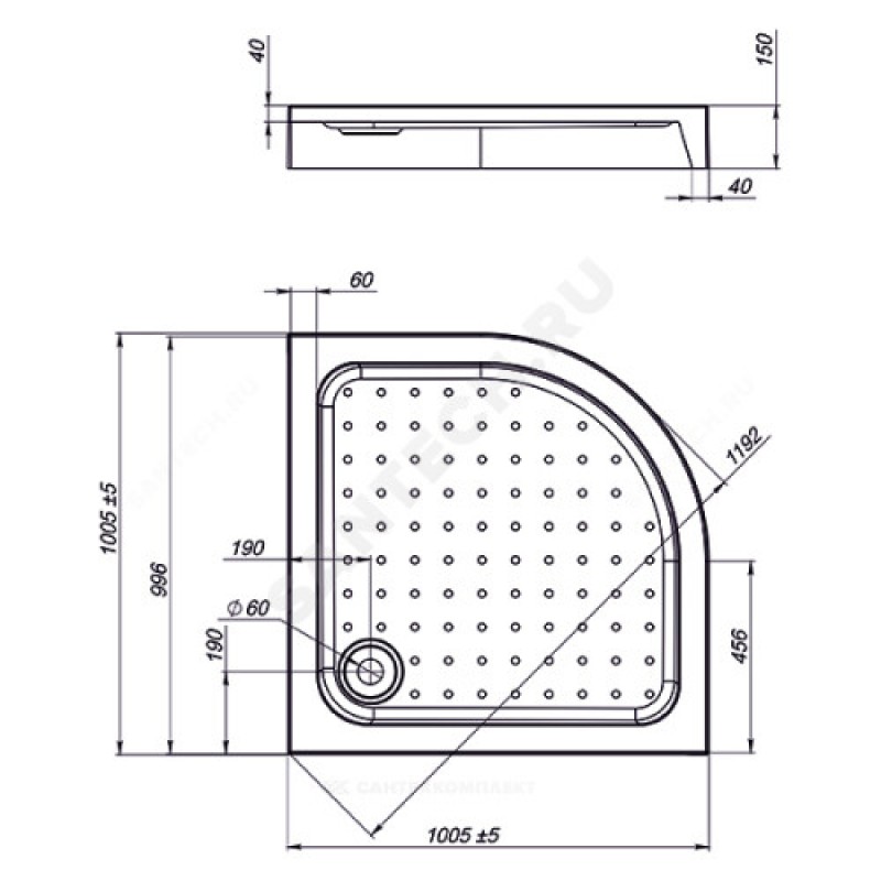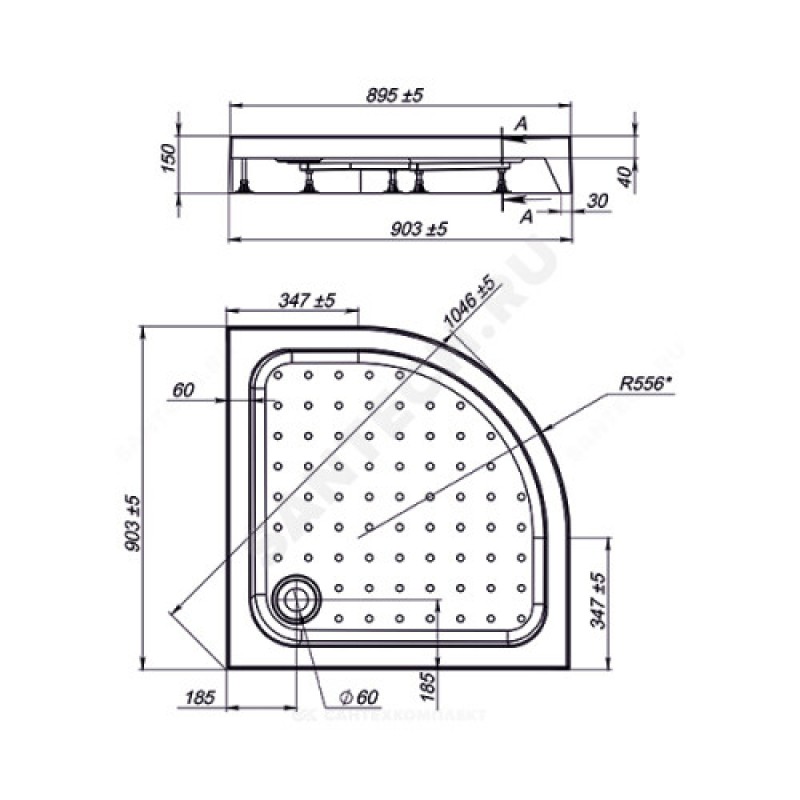 | Размер поддона, мм | 900х900х150 |