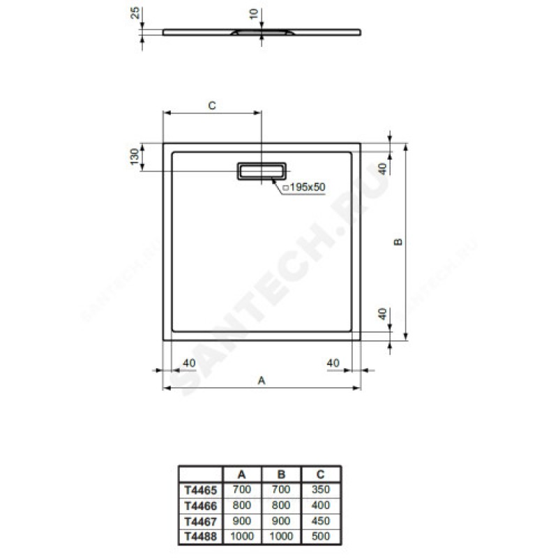 | Наименование производителя | Ультратонкий акриловый квадратный душевой поддон 800x800x25 мм Ideal Standard ULTRAFLAT NEW T4466V3 |