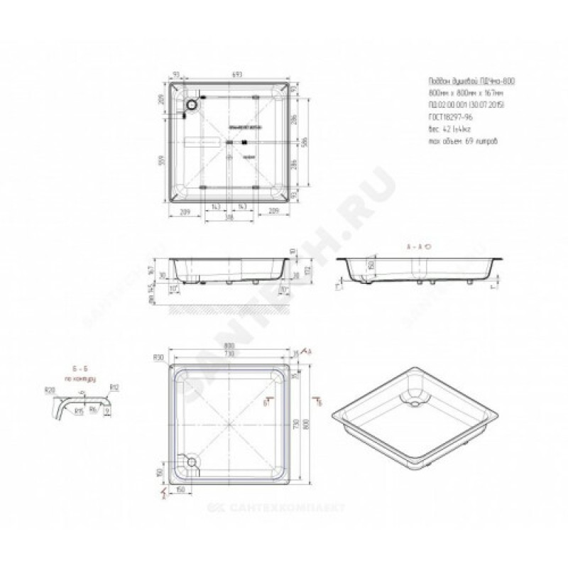 | Размер поддона, мм | 800х800х167 |