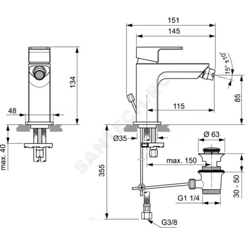 EDGE Однорычажный смеситель для биде керамический картридж 25 мм без функции HWTC, без функции CLICKгибкая подводка G3/8" (антибактериальные шланги PEX)система облегченного монтажа EASY-FIX (облегченный монтаж) аэратор Perlator с ограничением потока 5 л/мин. шаровом шарнире (поворотный)металлическая рукоятка с индикаторами горячей / холодной водыметаллический донный клапан