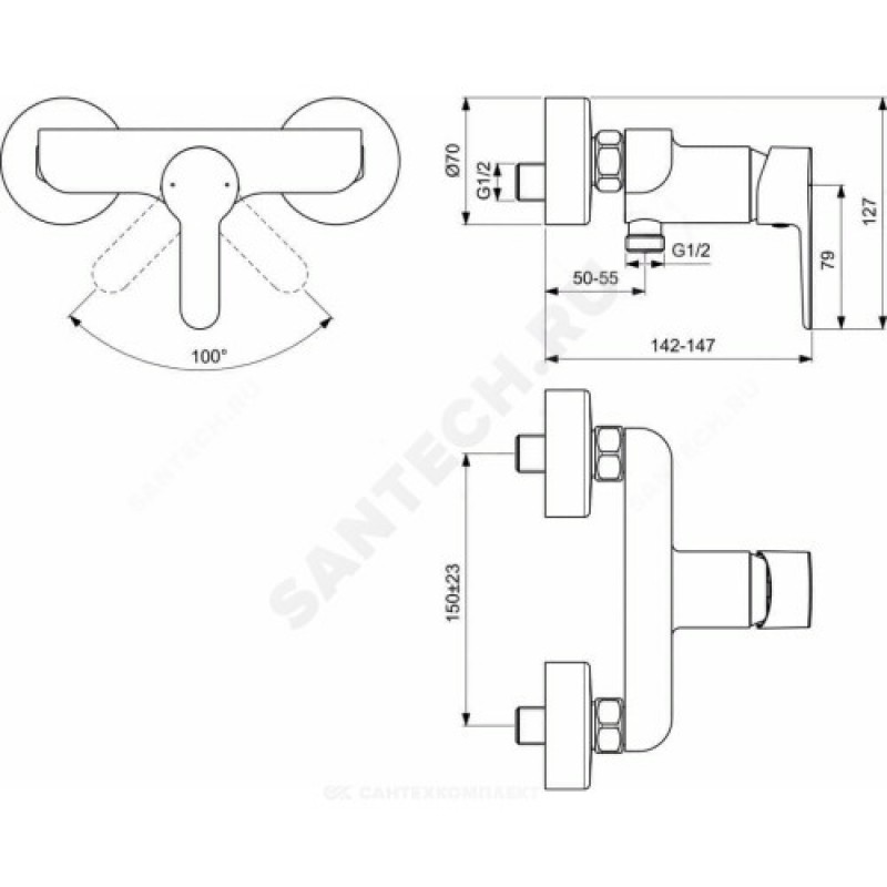 SESIA Настенный смеситель для душамонтаж на стандартных эксцентриках (в комплекте: эксцентрики, металлические отражатели, уплотнительные прокладки)керамический картридж 35 мм с функцией HWTCметаллическая рукоятка с индикаторами горячей / холодной водыобратный клапан