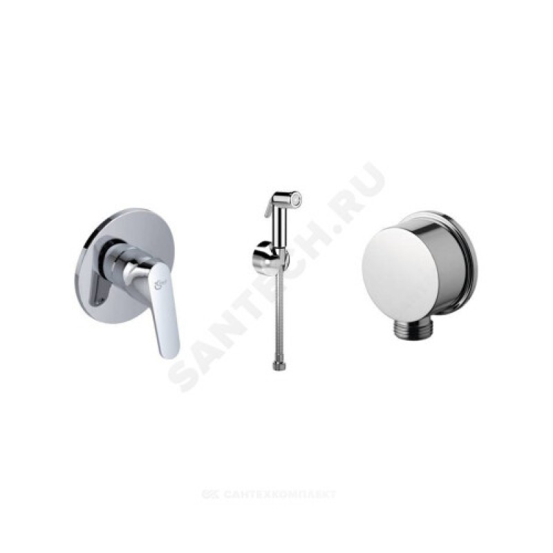Промо-комплект, состоящий из:B0595AA IDEALSPRAY ECO гигиенический душ, комплект, пластик (ABS), контрольная кнопка, макс.пропускная способность 7,6 л/минпластиковый (ABS) фиксированный настенный держательметаллический шланг 1250 мм, хромA5960AA CERAPLAN 2 Встраиваемый компактный смеситель для комплектации гигиенического душа, полный комплект (встраиваемая и настенная части), латунный внутренний корпус с одним выходом, пластиковая накладкаметаллическая рукоятка с индикаторами горячей / холодной водыB9448AA IDEALRAIN L1 подключение для душевого шланга 1/2"х1/2" для встраиваемых смесителей