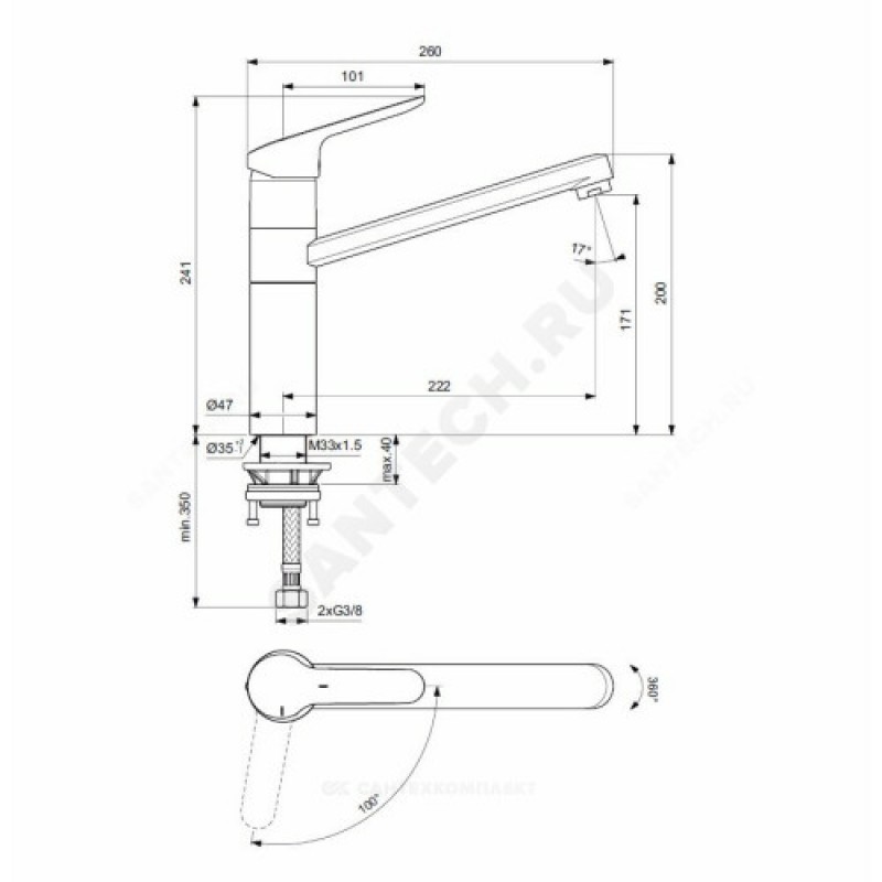 CERAFLEX Однорычажный смеситель для кухонной мойки, Технология Blue Start, средний изливсистема монтажа EASY-FIX (облегченный монтаж) с пластиковой опорной пластиной для более стабильного монтажа на мойке из нержавеющей стали, литой поворотный изливаэратор Perlatorкерамический картридж IS 40 мм, с функцией HWTC (ограничение максимальной температуры горячей воды), с функцией CLICK (ограничение потока воды), индикатор холодной/горячей воды (индикатор холодной воды расположен по центру)гибкая подводка G3/8", шланги стандартной длины 400 мм
