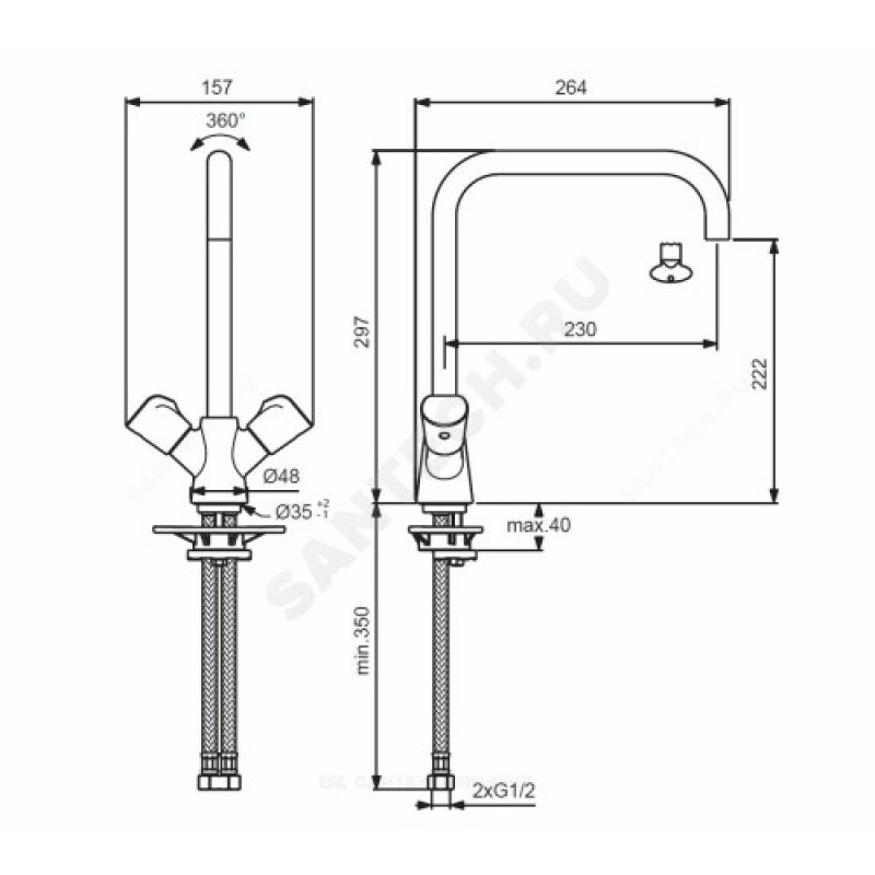 | Вращение излива | поворотный |