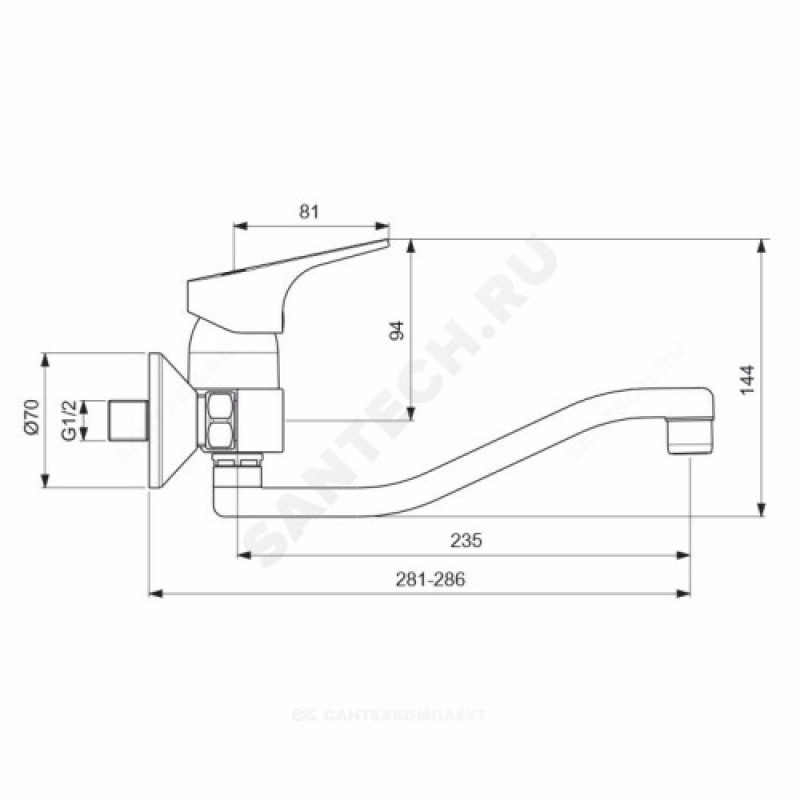 | Длина излива | 235 мм |