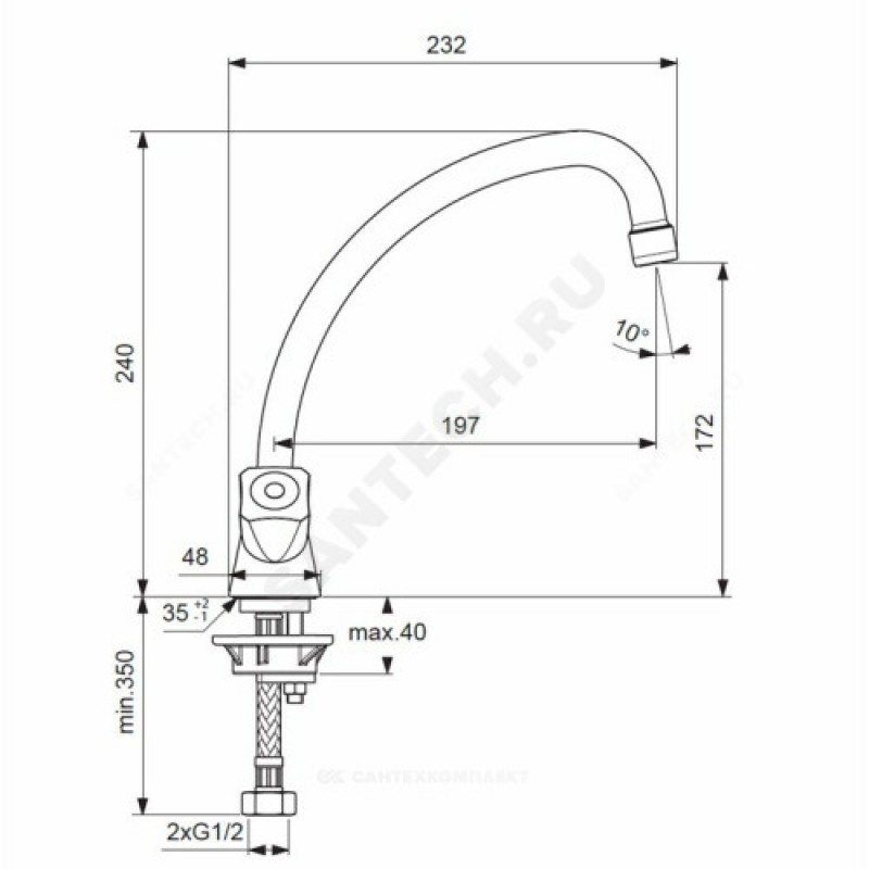 Комплект поставки смеситель, подводка гибкая, крепежный комплект (шпилька с гайкой, пластина U-образная, пластиковая монтажная накладка StrongFix, прокладка круглая), упаковка, паспорт