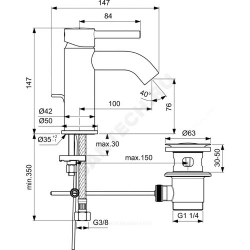 | Комплект поставки | смесителькрепежный комплектдонный клапан 1 1/4"подводка гибкая - параупаковкапаспорт |