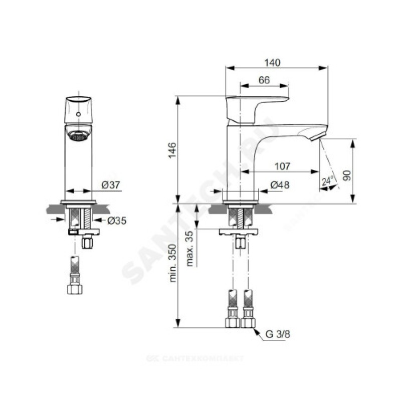 CONNECT AIR Смеситель для раковины, тонкий корпус 36 ммсистема монтажа EASY-FIX (облегченный монтаж)аэратор Perlator M24x1 с ограничением потока 5 л/мин.керамический картридж 25 мм без функции HWTC, без функции CLICKгибкая подводка PEX G3/8" 400 ммбез донного клапана