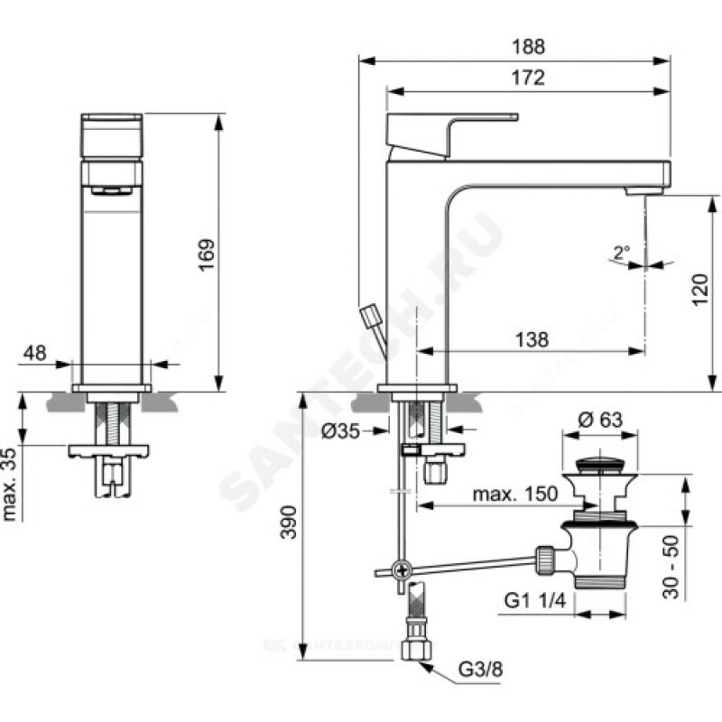 | Комплект поставки | смесителькрепежный комплектдонный клапан 1 1/4"подводка гибкая - параупаковкапаспорт |