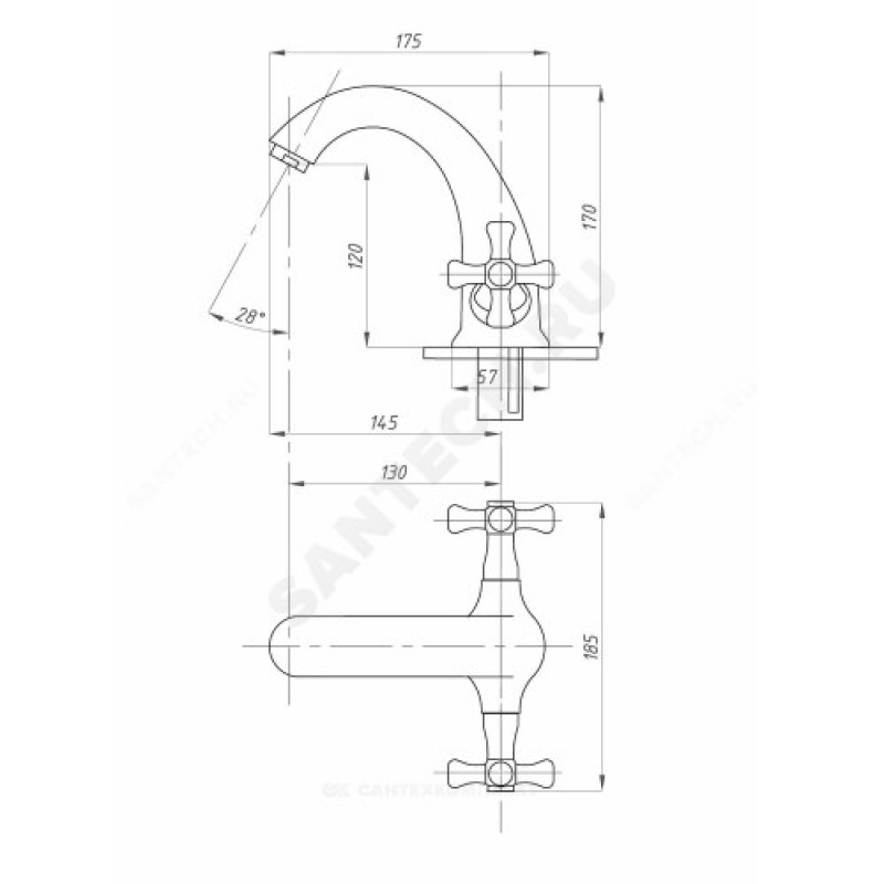 - Артикул:Смеситель для умывальника ПСМ-712-К/75 двуручный Профсан