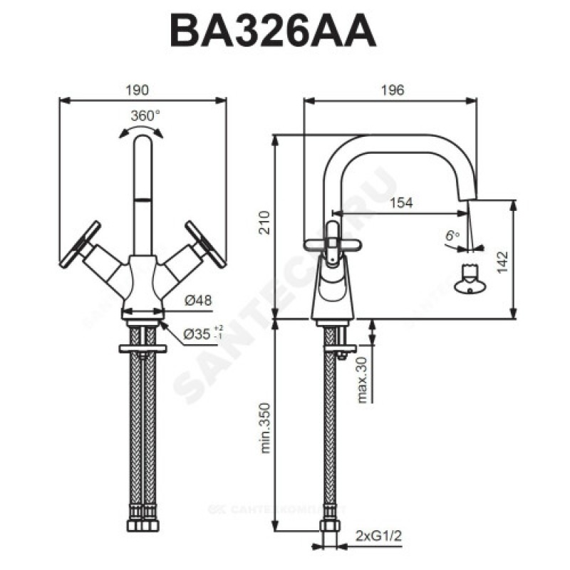 | Комплект поставки | смеситель, подводка гибкая 3/8"+переходник на 1/2", упаковка, паспорт |