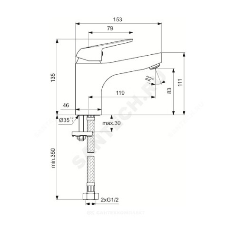 | Комплект поставки | смеситель, подводка гибкая, крепежный комплект (шпилька с гайкой, пластина U-образная, прокладка U-образная, прокладка круглая), упаковка, паспорт |