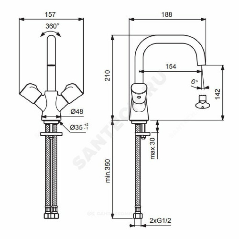 | Комплект поставки | смеситель, подводка гибкая, крепежный комплект смесителя (шпилька с гайкой, пластина U-образная, прокладка U-образная, прокладка круглая), упаковка, паспорт |