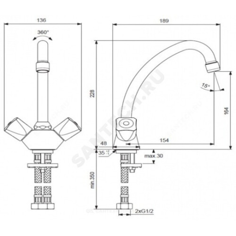 | Комплект поставки | смеситель, подводка гибкая, крепежный комплект (шпилька с гайкой, пластина U-образная, прокладка U-образная, прокладка круглая), упаковка, паспорт |