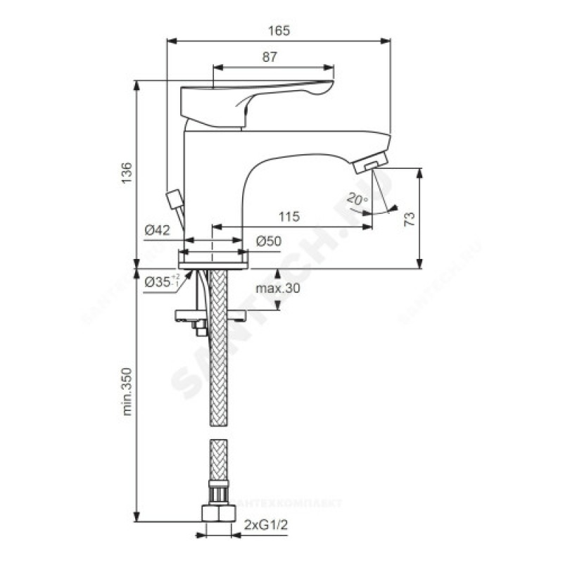 | Стандарт гибкой подводки | 1/2" |