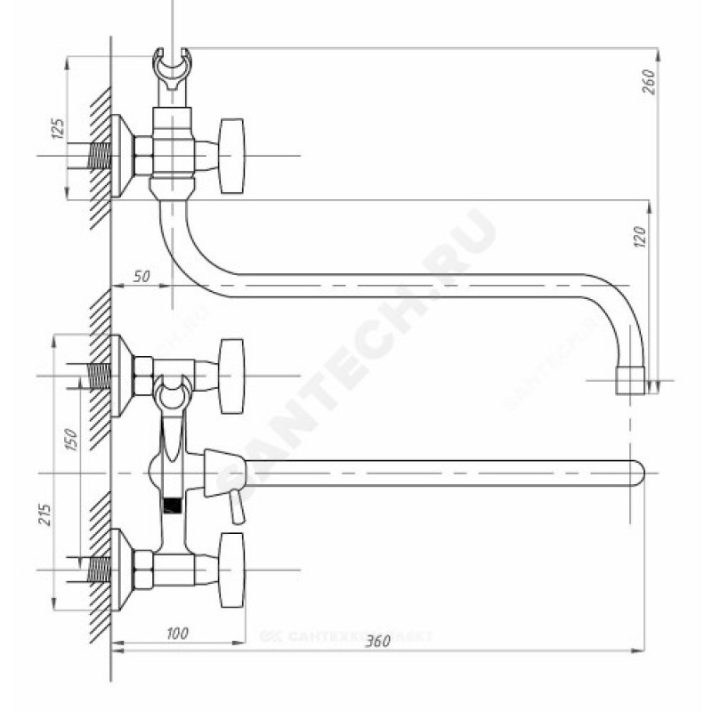 - Артикул:Смеситель для ванны с душем ПСМ-157-К/80 двуручный Профсан